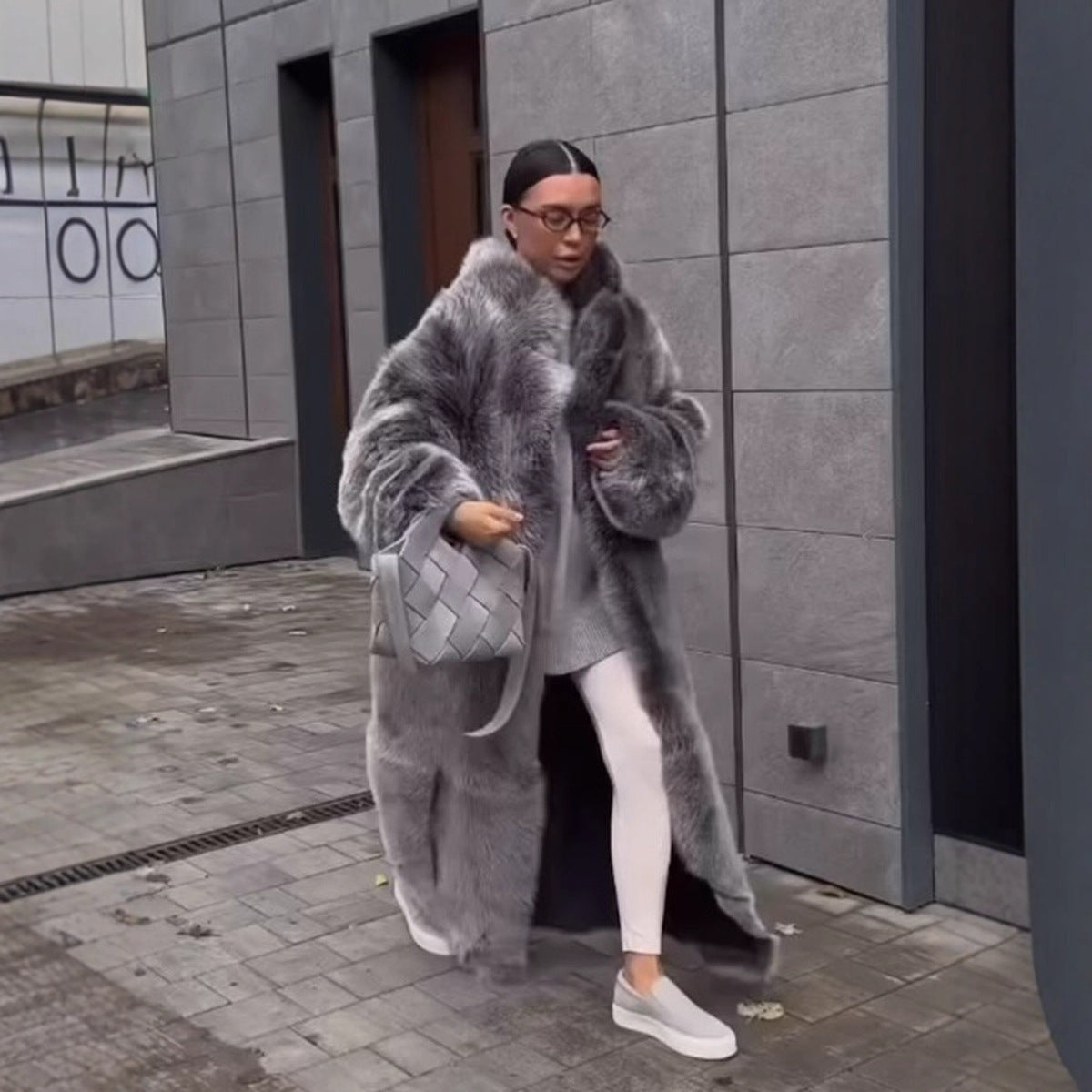 Women's Black And White Two-color Wool Coat